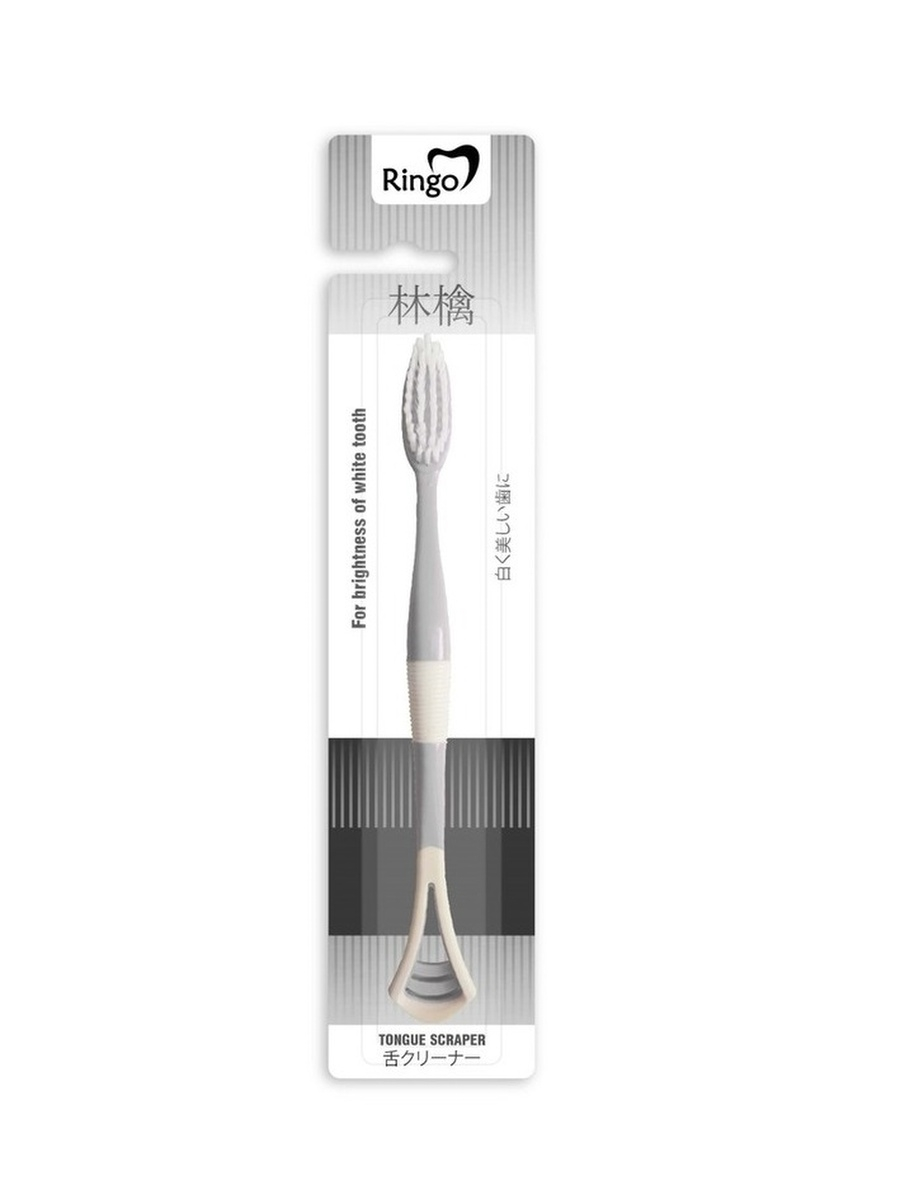 RINGO Зубная щетка с жесткой щетиной со скребком 2 в 1 (Япония)