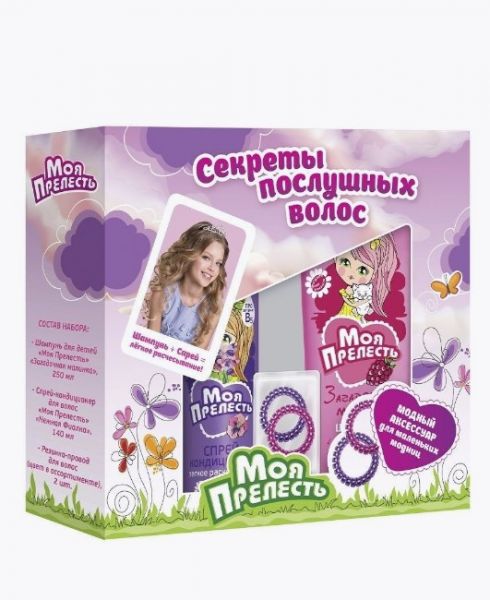 МОЯ ПРЕЛЕСТЬ НАБОР Секрет послушных волос (шамп.+спрей д/волос, 2 резинки)