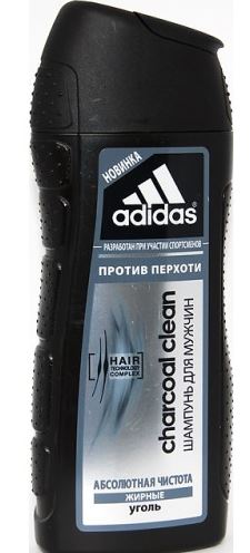 Шампунь против перхоти для жирных волос для мужчин Adidas Сharcoal - абсолютная чистота против перхоти для жирных волос для мужчин. Разработан при участии спортсменов. Его инновационная технология HAIR TECHNOLOGY COMPLEX обеспечивает глубокоеочищение и подходит для всех типов волос. Комплекс HAIR TECHNOLOGY - это уникальное сочетание двух основных компонентов, известных своим действием: пантенол: интенсивное увлажнение; катионный полимер: облегчение расчёсывания волос. Формула шампуня сугольной пудрой глубоко очищает волосы и кожу головы от жира и загрязнений за одно применение, оставляя ощущение абсолютной чистоты и свежести. Технология "Без силикона". Исключительно бережно воздействует на волосы.