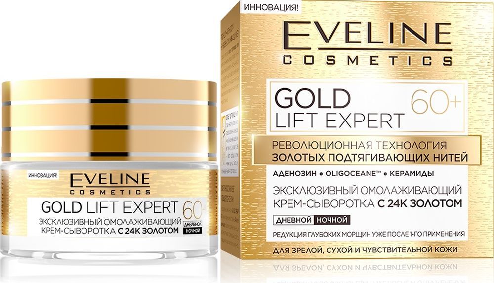 EVELINE Gold Lift Expert Эксклюзивный укрепляющий крем-сыворотка С 24к золотом 60+ 50 мл