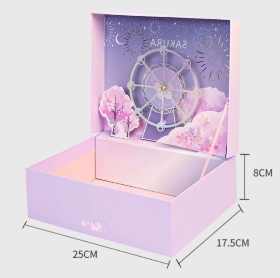 Коробка подарочная с объемной иллюстрацией 25*17,5*8 см, розовая с сакурой