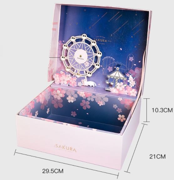 Коробка подарочная с объемной иллюстрацией 29,5*21*10,3 см, розовая, ночной пейзаж с сакурой